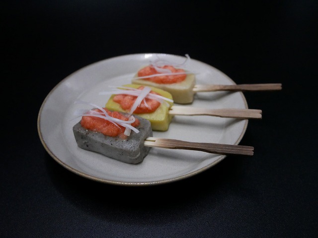 いろいろ試したい定番の棒生麩1本、変わり種棒生麩1本、花麩1本です。