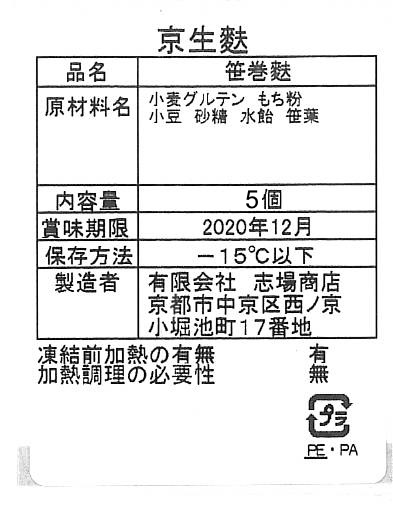 原材料名 小麦たんぱく(国内製造)、もち粉(佐賀県産)、小豆、砂糖、水飴、笹葉、(一部に小麦を含む)